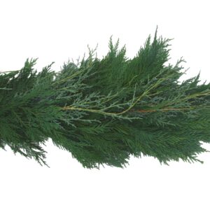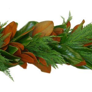 Options for greenery for garlands and door swag, centerpieces and candle rings include Arborvitae, Blueberry Cedar, Carolina Sapphire, Eucalyptus, Gold Tip Cedar, Green Leyland Cypress, Magnolia, Ming Pine, Pine and Variegated Leyland Cypress.