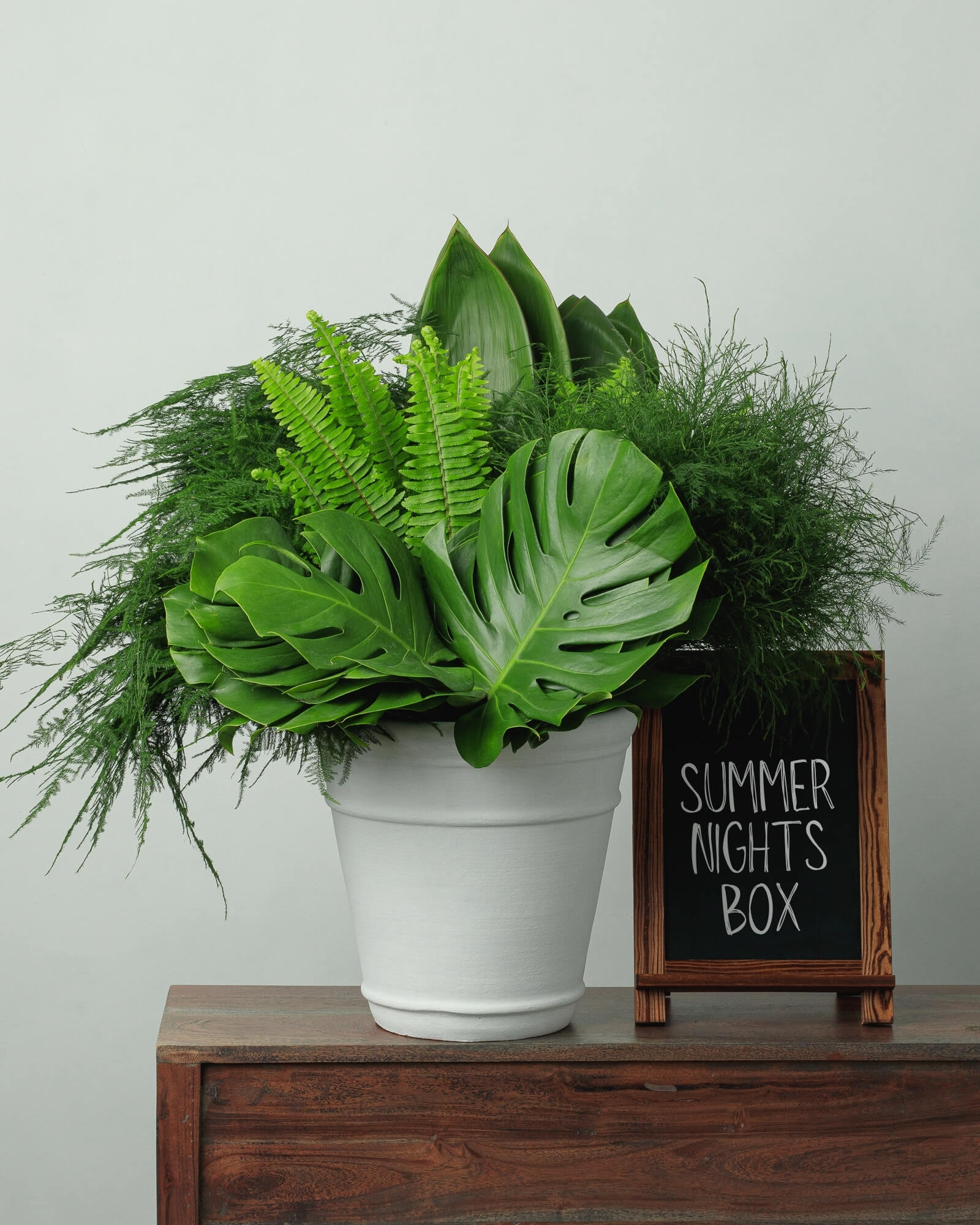 Whether for day or night, or flowers light or bright, the mix of greenery within our Summer Nights Box will always be a delight.